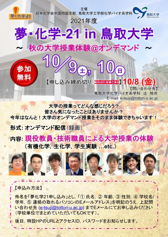 夢・化学-21 in 鳥取大学 ~ 秋の大学授業体験@オンデマンド ~